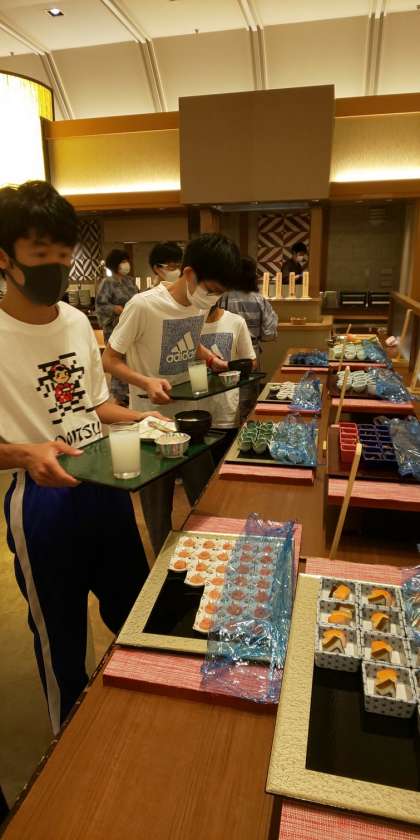 さあ、朝食。全員元気に揃いました。今日の活動の為に、しっかりといただきました。