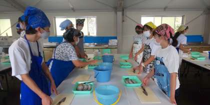 はあとふる体験二日目、こちらは魚さばき体験が始まりました。