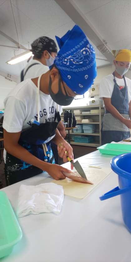 包丁を気づけば利き手の逆で持ってしまったり、ひっくり返し返すと言われても、左右なのか上下なのか分からなくなったり、悪戦苦闘している人もいれば、「初めて?」と思うほど手つきの良い人もいます。