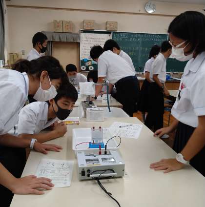 ところが、私が初めて受けた質問が2つと初めて見た失敗がありました。水の電気分解では気体が発生し、その気体が何かを確かめるのに火のついた線香を使うのですが、「先生、線香にどうやって火をつけるのですか。」その生徒のテーブルには折れて短くなった線香がありました。なんと、マッチ箱で線香をこすってつけようとしたのでした。また、火のついた線香で気体を調べるのに、炎のついたままの線香を使う班がありました。火のついた線香とは炎を消して使うのですよ。そして、最後は「先生、線香の火はどうやって消すのですか。」振って消そうとした人もいましたが、蚊取り線香でも途中で消すのは水につけると次、使えなくなります。火のついた部分だけ、硬いものに押し付けて折ってしまえばいいのです。