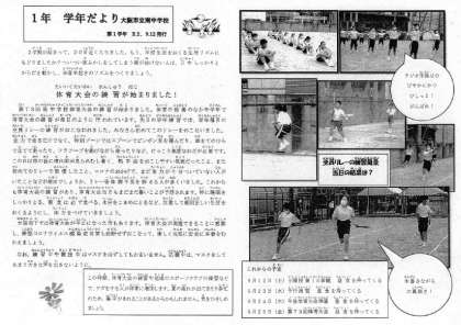 本日配布しました1年生の学年だよりです。体育大会に向けて頑張るとともに、体調をととのえることも大切なことですね。