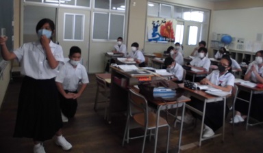 黒板を使って課題発表の場面です。先生がいなくても授業ができるんじゃないか!?・・・と思えそうそうなくらいに活発なよい発表でした。堂に入ってますなあ。
