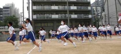 体育大会に向けての練習。競技中も、オフのときも、一つひとつの動作が、みんな全力疾走な南中学校です。