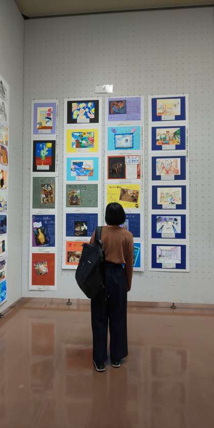 南中からは、美術の授業で制作した23名の作品→1年生の「不思議な世界」と、2年生の「理想の部屋」、3年生の「名画にDIVE IN」が出品されています。