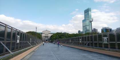 大阪市立美術館へは堺筋線動物園前駅からが便利です。5番出口から出て徒歩10分程です。写真のように動物園を横目に、ハルカスを眺めながら、あっという間に美術館に着きます。
