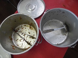 おみそしるも、きんぴらも、おなべはからっぽです。