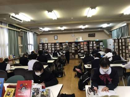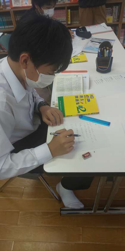 写真は放課後の元気アップで勉強しているところと、生徒会の執行役員が漢検問題を考えているところです。