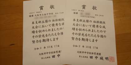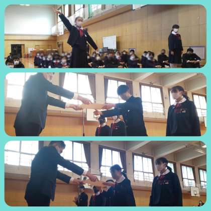 ブロックの大会で、好成績を残した体操部の表彰です。