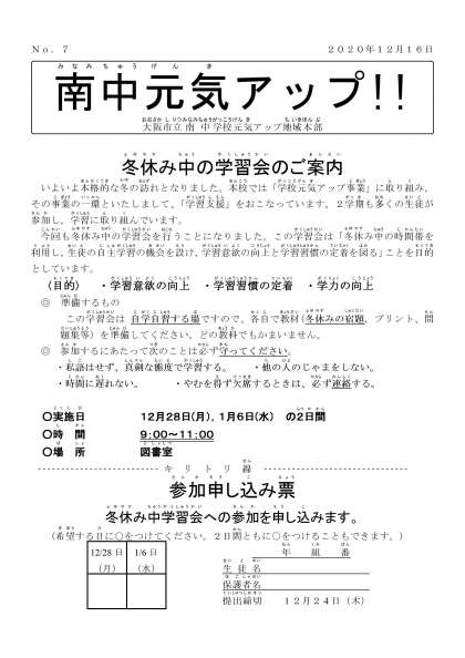 冬休み学習会の案内