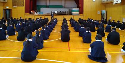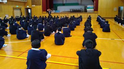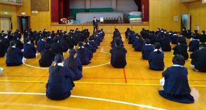 校長からの講話の後、教務主任からはあいさつの話がありました。冬休み中に学校に出てきたときにサッカー部や水泳部の生徒さんの方から丁寧な年始の挨拶をもらって、心が温かくなり、非常にうれしかったということでした。