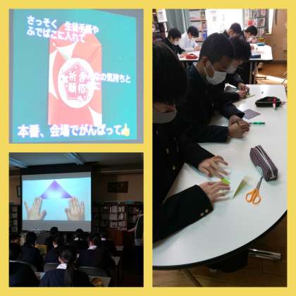 生徒のSさんからのサプライズがありました。なんと1人で全員に「合格」と書いた小さなお守りを折ってくれていたのです。先生達には「健康」と書いてある心遣いも。ありがとう、Sさん。