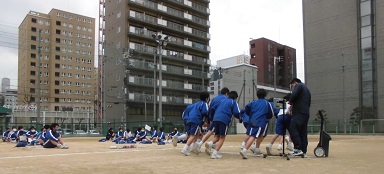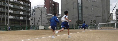 写真は1年生の体育の授業です。長距離走を行っています。みんな元気で力強い走りです。タイムも少しずつのびているそうですよ。