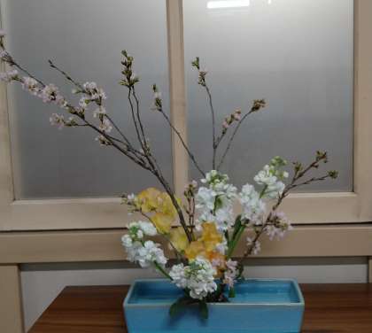 甘い香りの黄色のスイートピー 白のストック 早咲きのサクラ