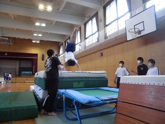 体操部にも、たくさんの1年生がおとずれたようです。こもんの先生とやさしい先輩のしどうのもと、1年生も元気に活動中です。