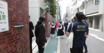 きょうも、たくさんの先生が見守るなかでの登校です。