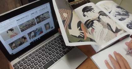 自分たちの浮世絵をつくります。先達たちと、先端技術をリスペクトしつつ。みんな熱心にとりくみます。
