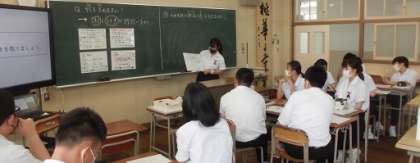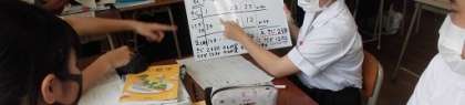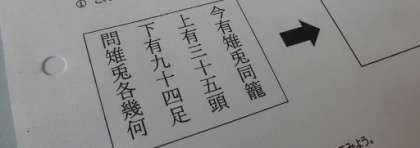 本日の題材は、中国語の算術書より。まずは正確な発音で問題文が読みくだされます(だってクラスには中国からの同級生がいるんですもの)。これをグループワークで解法をさぐり、発表しあうのです。みな真剣です。