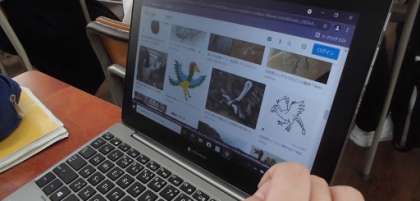 生物の進化について学んでいます。ひとり一台端末があるので、疑問に思ったことが、すぐに調べられるのです!
