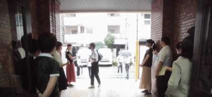 ひさしぶりに梅雨っぽい朝の風景です。でもみんな元気に登校です。