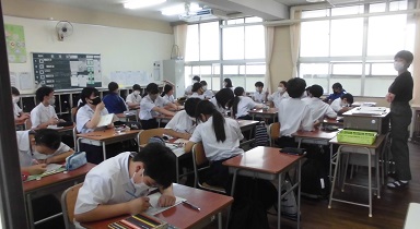 6限、1年生のみんなは体育大会に向けて、学級旗のデザインを考えていたのです。どんな旗になるか、みなさんおたのしみに!