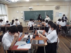 班でテーマをきめ、端末上でしらべたことを文書に編集するというスキルがぐんぐんのびていくのです。