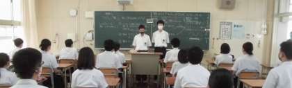 終学活で1分間スピーチをおこなう場面です。姿勢と目線にきをつけて、音量・かつぜつ、もちろん内容にもよいものをめざしています。もちろん、スピーチをきくひとたちのしせいもよいのです。