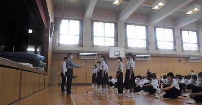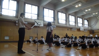 たくさんの表彰がありました。少年をまもる大会の表彰を南警察署のかたから受けました。そして部活動での活躍の表彰がありました。みなさん、たいへんよくがんばりました。
