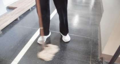 モップできれいに磨きあげていきます。南中学校の廊下は、どこも黒光りがするまでになっているのです。たいせつな心がけなのです。