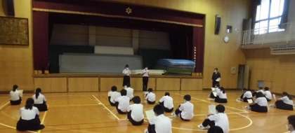 毎週木曜日の朝は、2年生の学年集会です。 けさは、生徒会種目についてのお話でした。