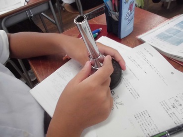 元栓にはつながってはいませんが、実物を用意しました。生徒全員ひとりずつ、ガスバーナーを手にとって、実際にねじの操作のぐあいをたしかめるのです。紙面だけではえられないものが実感できるのです。