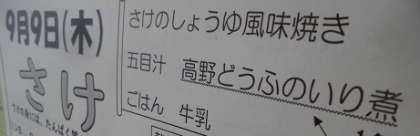 9月9日(木)の給食