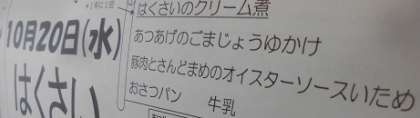 10月20日(水)の給食