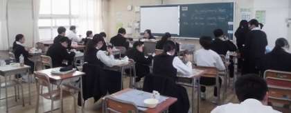ことしも漢検ウィークの季節になりました。おひるの放送で、漢字を学べる問題が出題されます。みな、黙食しながら、真剣に考えています。