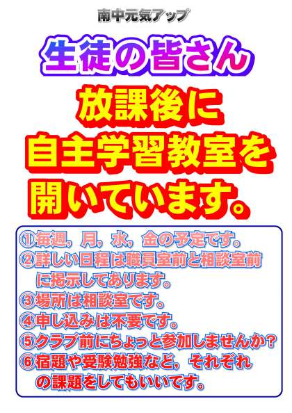 学校元気アップによる、放課後学習会をお知らせいたします。