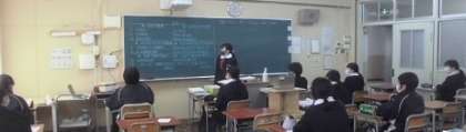 担当の人が前にでて、前時の授業をおさらいします。みんなでくりかえし学びます。南中の人たちはまじめにがんばっています。