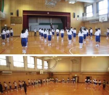 1年生は、南中学校で、はじめておこなう、体育の授業。はりきる気持ちと、緊張もちょっぴり。