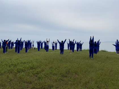 美しい琵琶湖を見ながらラジオ体操をしたあとは、朝ご飯です。