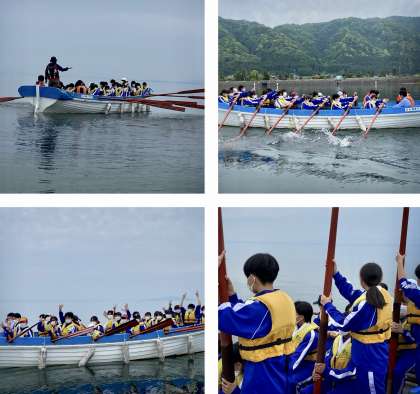 声を出して気持ちを合わせ、櫂(かい)を動かしていきます。