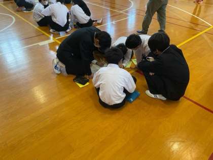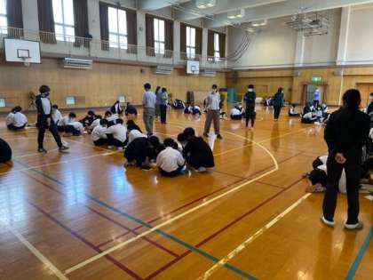 一泊移住翌日、今日は1.2年生は健康チェックを行ったのち、2学年合同の振り返りをしています。