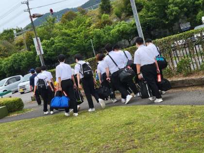 入村式が終わり、いよいよ民泊体験スタートです。いってらっしゃい!