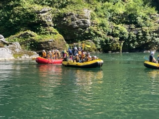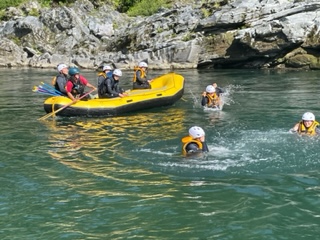 みんなで協力してボートを漕ぎ、川に飛び込んだり、とても楽しい時間になりました!