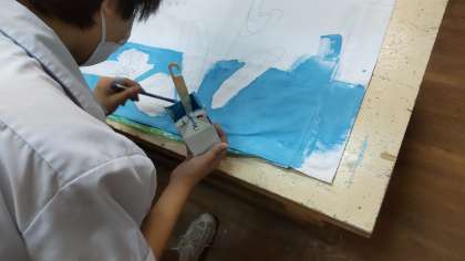 懇談期間中の放課後を利用して、体育大会のクラス旗づくり。
