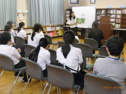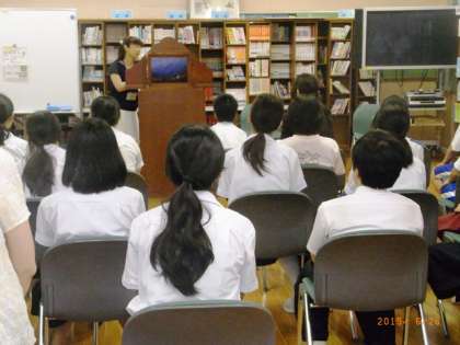 防犯訓練は暴漢が2名学校内に侵入し、特定の生徒を探してるという設定で行われました。暴漢役の南署の方々と、取り押さえる役の赤木・野間・佐藤先生の声に迫力がありました。おはなしの会は初めての試みだったそうですが、生徒の協力もあり何とかうまく実施できました。