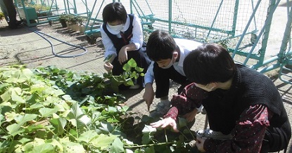 今年も南中では、りっぱなミカンがたくさんなりました。サツマイモの良いつるの選び方も学びました。ひとつだけ、お芋をほってみると、素晴らしい収穫の予感となりました。