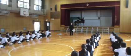 今回の練習は、上級生のクラスと下級生のクラス、2つの学級が会し、たがいに歌を聴きあう、採点の練習もふくむものなのです。相互に評価・感想を述べ、アドバイスしあう、前向きな言葉がたくさん聞かれましたよ。