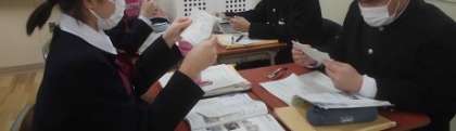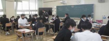 英語の授業ではペアでスピーチをおこない、相互評価しています。ぶあついコメントの束をみんな熱心に読み込んでいます。やる気につながってくるのです。