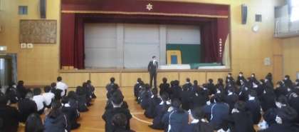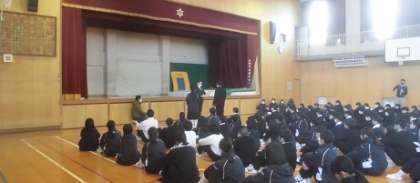 3学年がそろう、さいごの全校集会です。