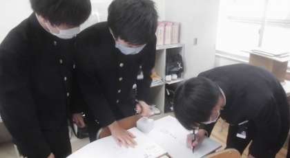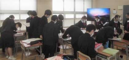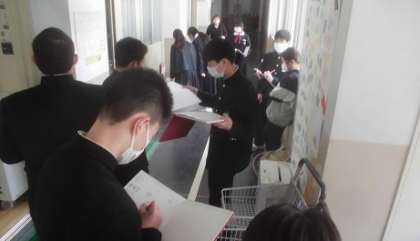 卒業アルバムがくばられました。1組も2組も、みんなでメッセージを寄せあう3年生のひとたちです。