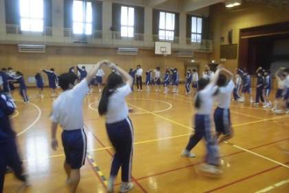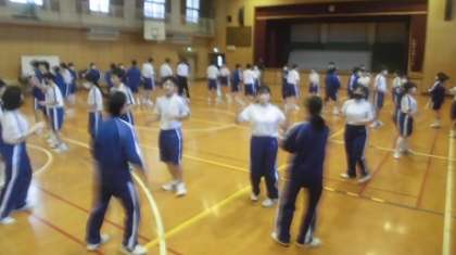 5時間目、2年生は体育館でフォークダンスのとりくみをおこないました。みんな、いきいきとしています。