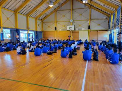 入所式の様子です。 今回お世話になる施設の方からのお話を聞いています。